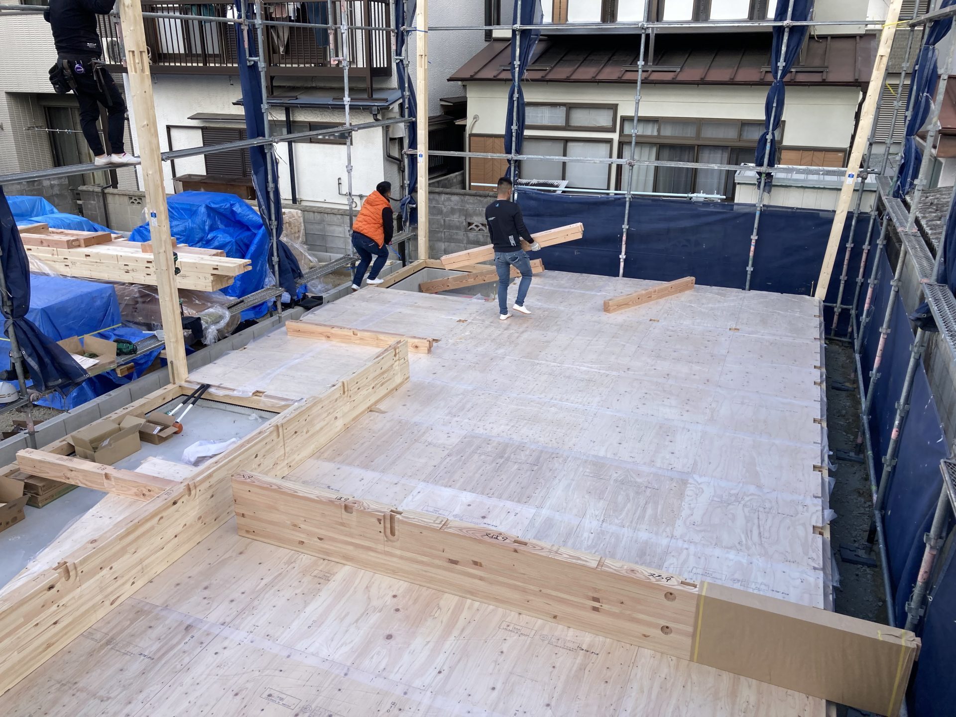 この「棟上げ」は、1階の柱から屋根までを1日で一気に組み上げる、まさに家づくりの「花形イベント」です。